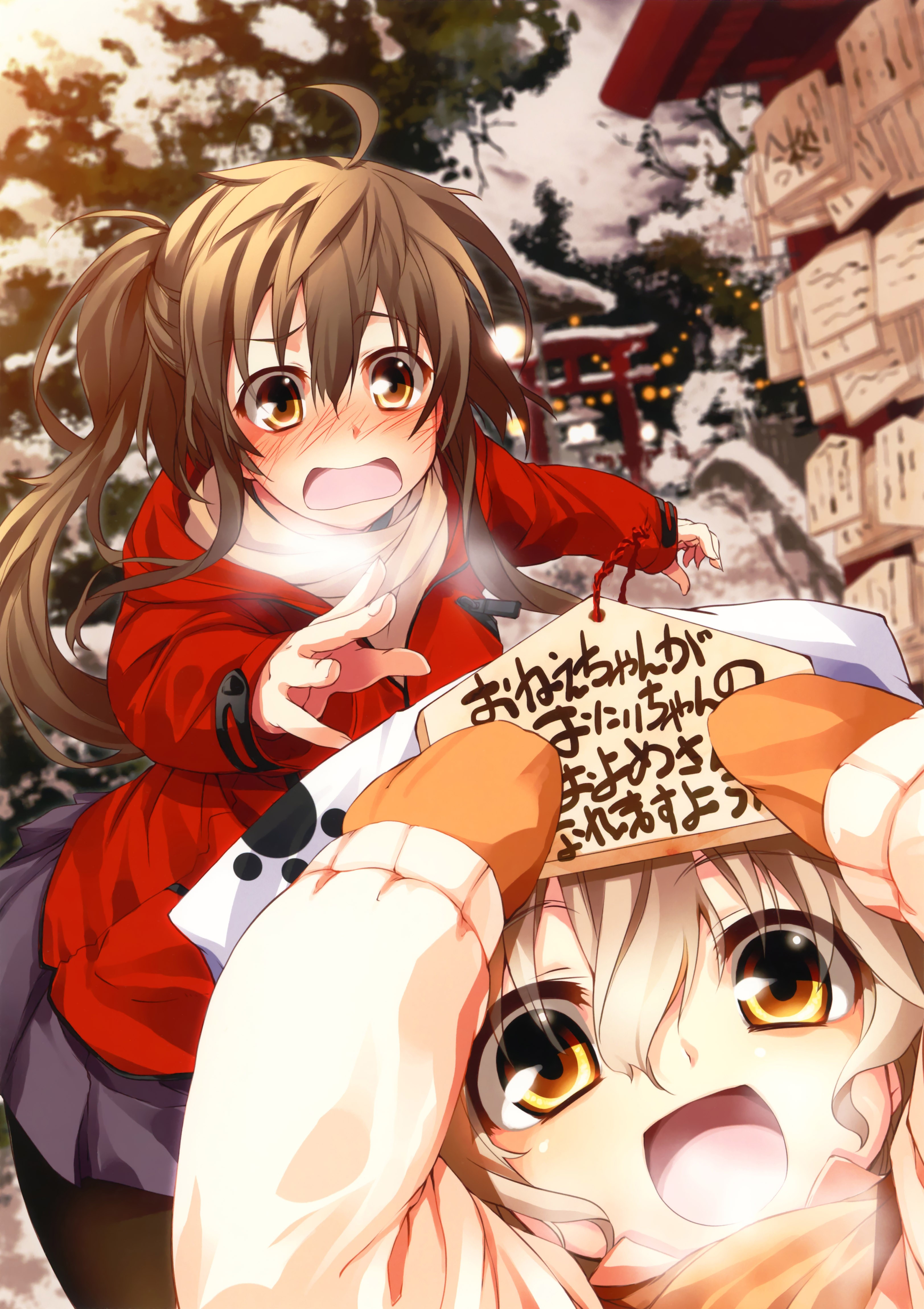 Trees snow winter Anime gloves coat scarfs long hair anime