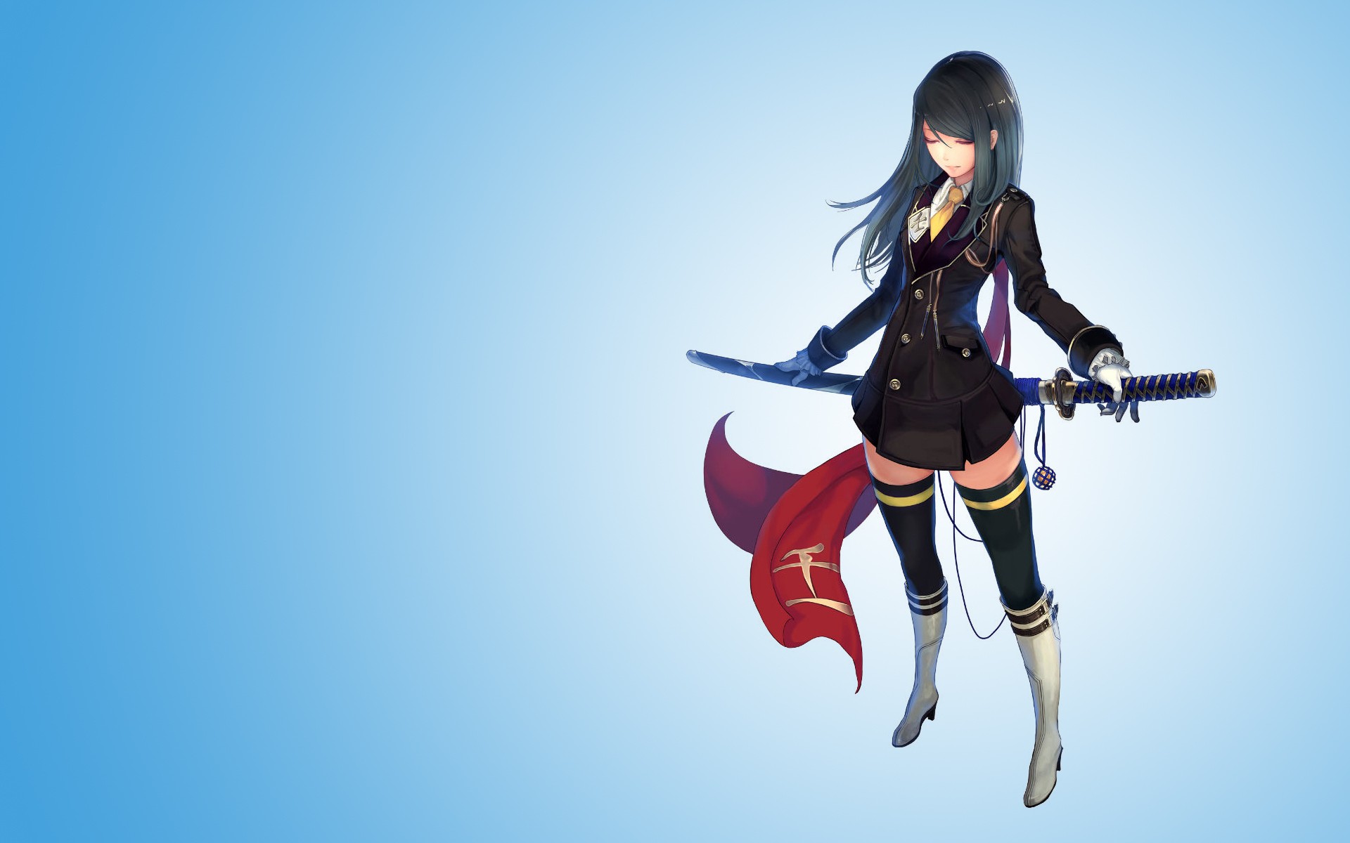 Weapons gradient Katana blue background gloves Swords long hair