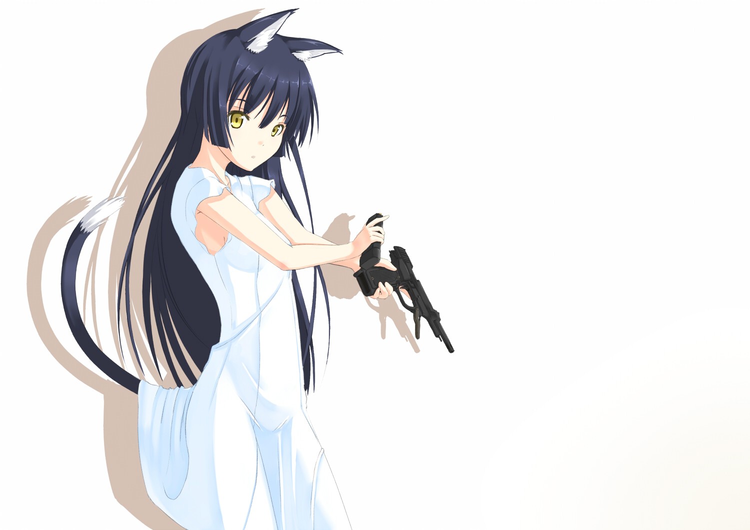 Weapons Guns Anime white background pistols shadows blue hair