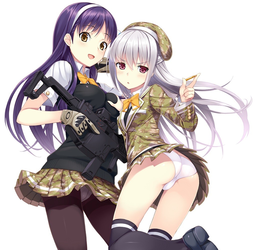 Weapons Guns white background red eyes anime girls school