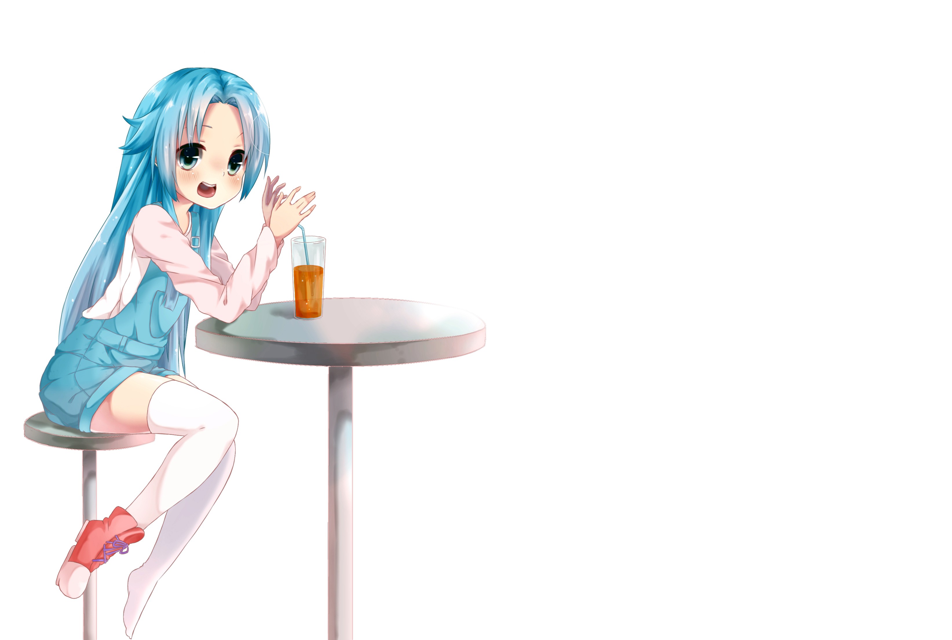 White Anime blush blue hair long hair anime girls green eyes