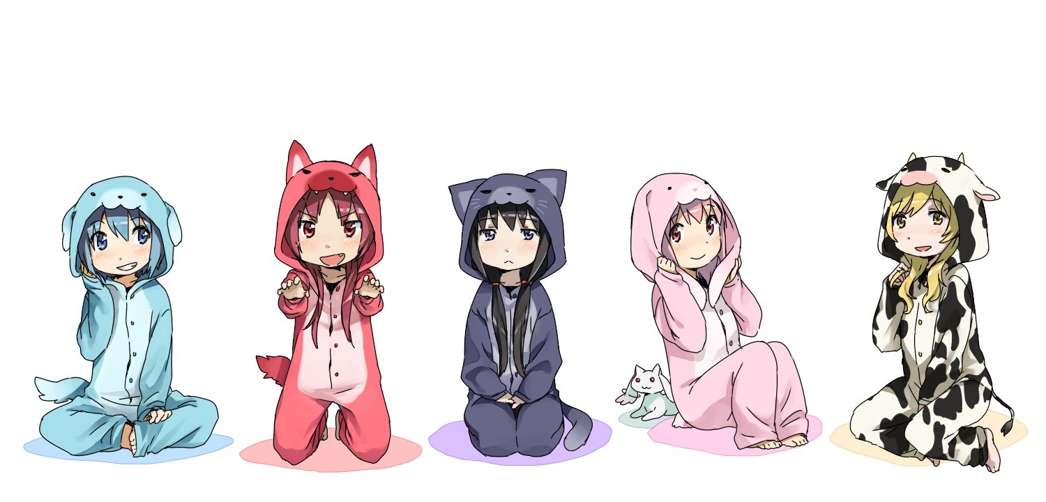 White Anime pajamas blush anime girls mahou shoujo madoka