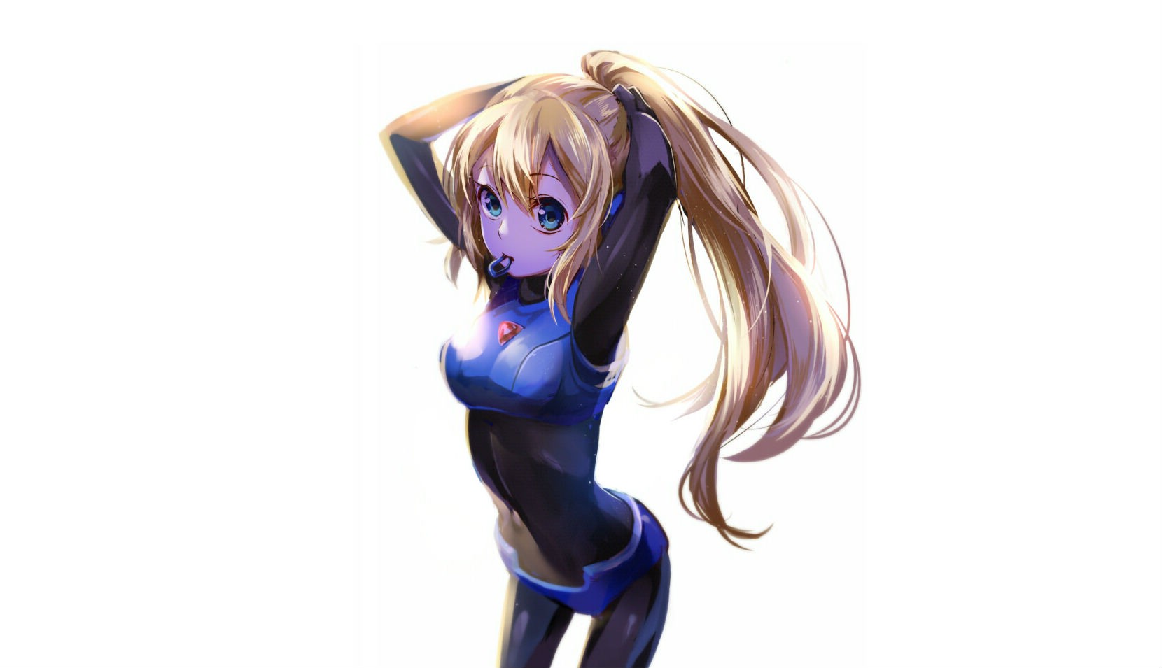 White background blondes long hair blue eyes bangs ponytails