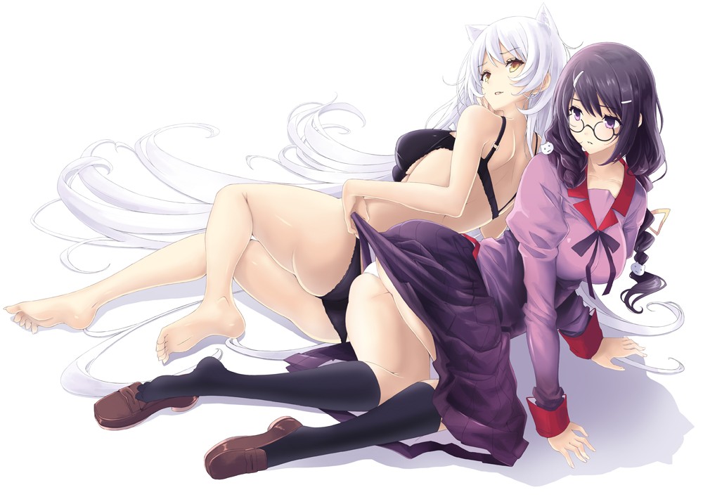 White hair long hair barefoot school uniforms braids
