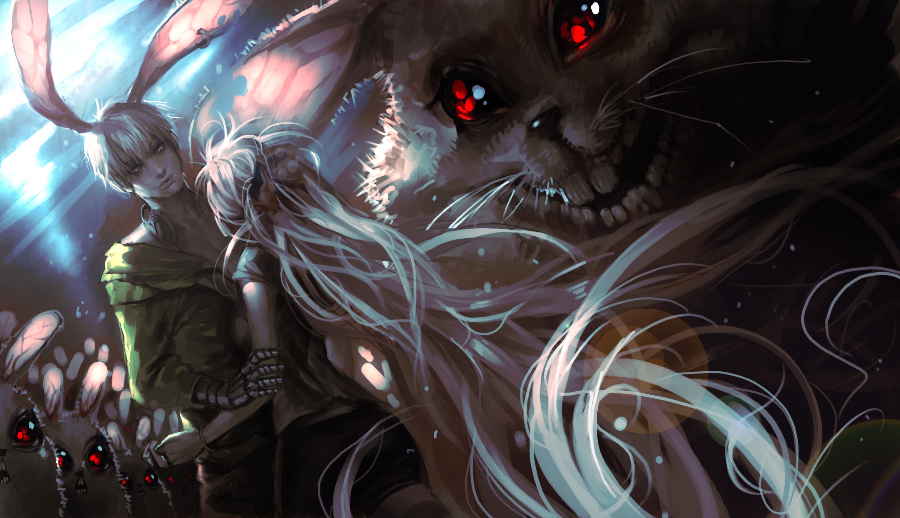 White hair red eyes long hair Bunnies artwork bunny ears