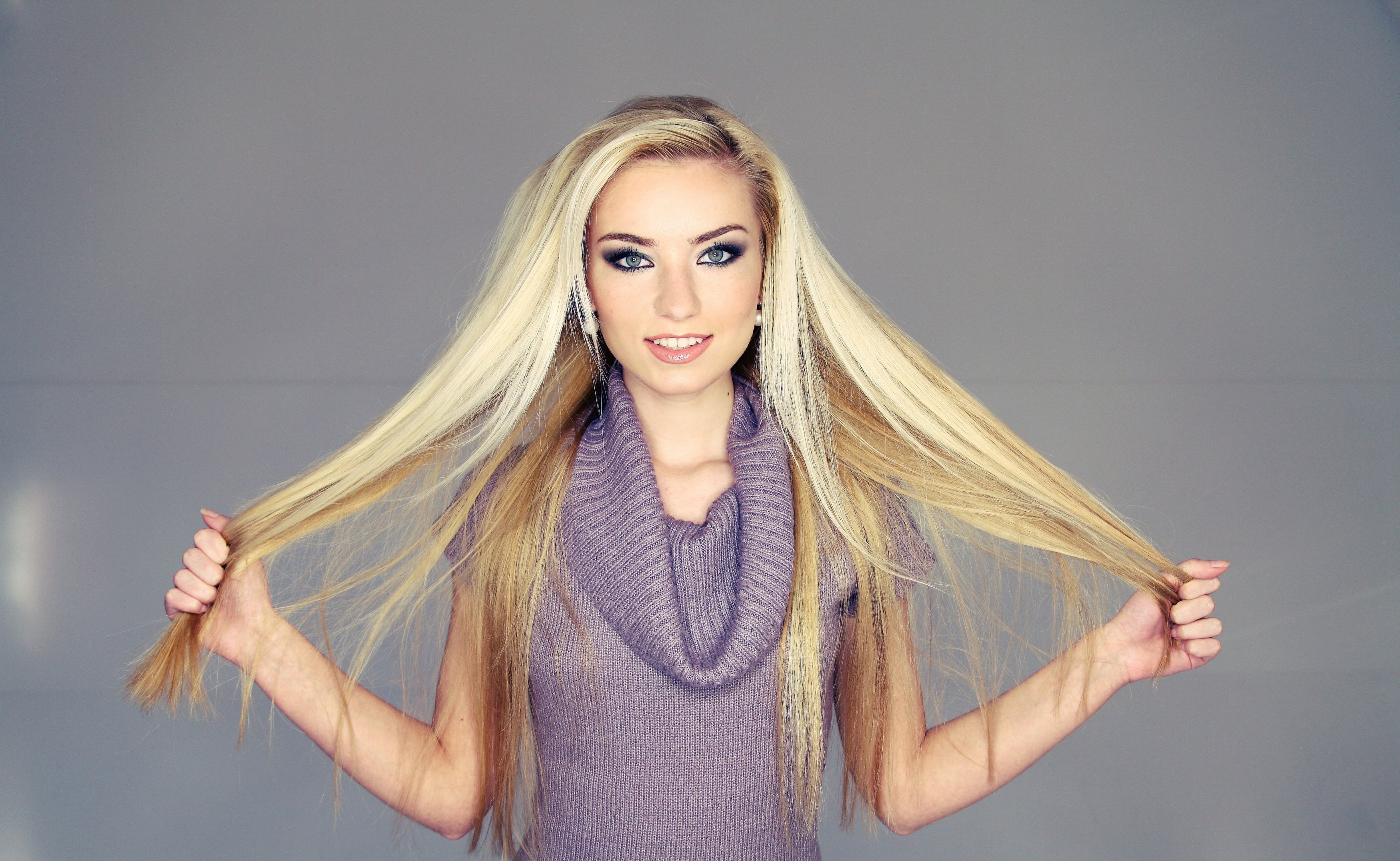 Woman blondes long hair green eyes models Diana Fox