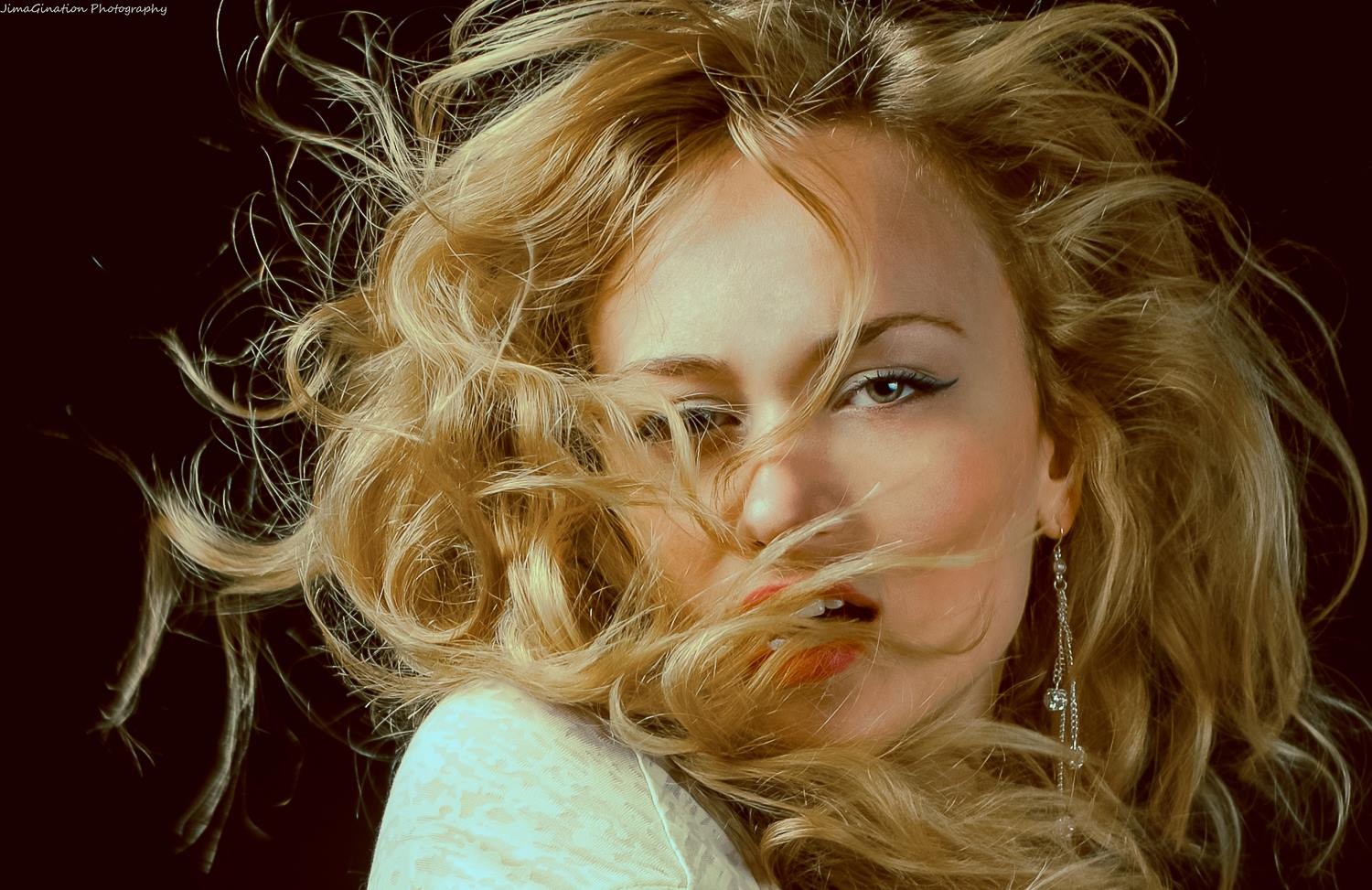 Woman blondes models curly hair Jima Gination