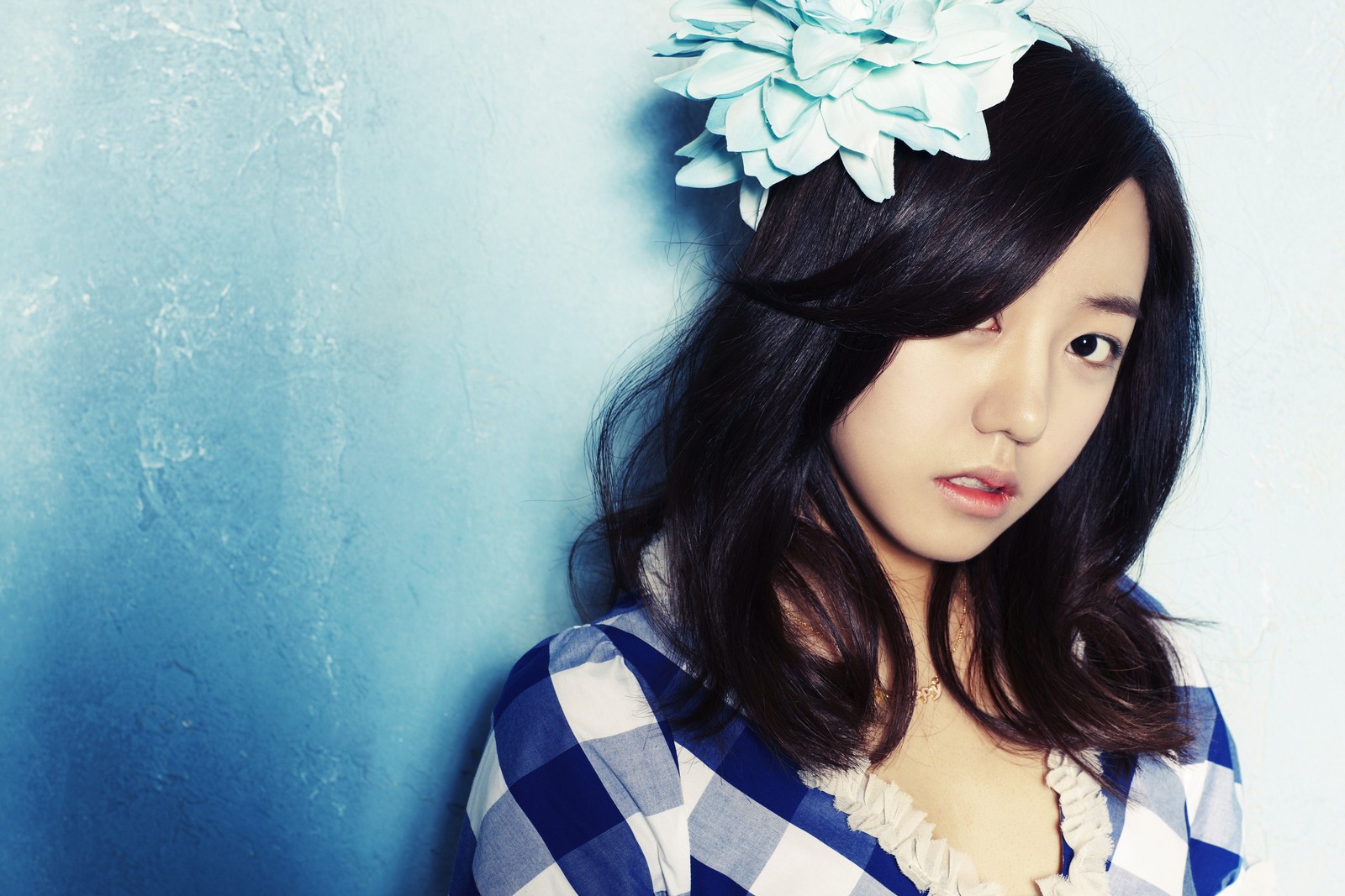 Woman blue background asians singers black hair Korean k-pop A