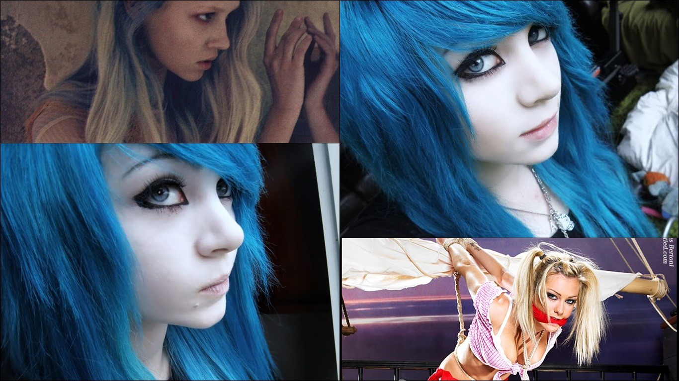 Woman blue hair blue eyes bondage amber McCrackin