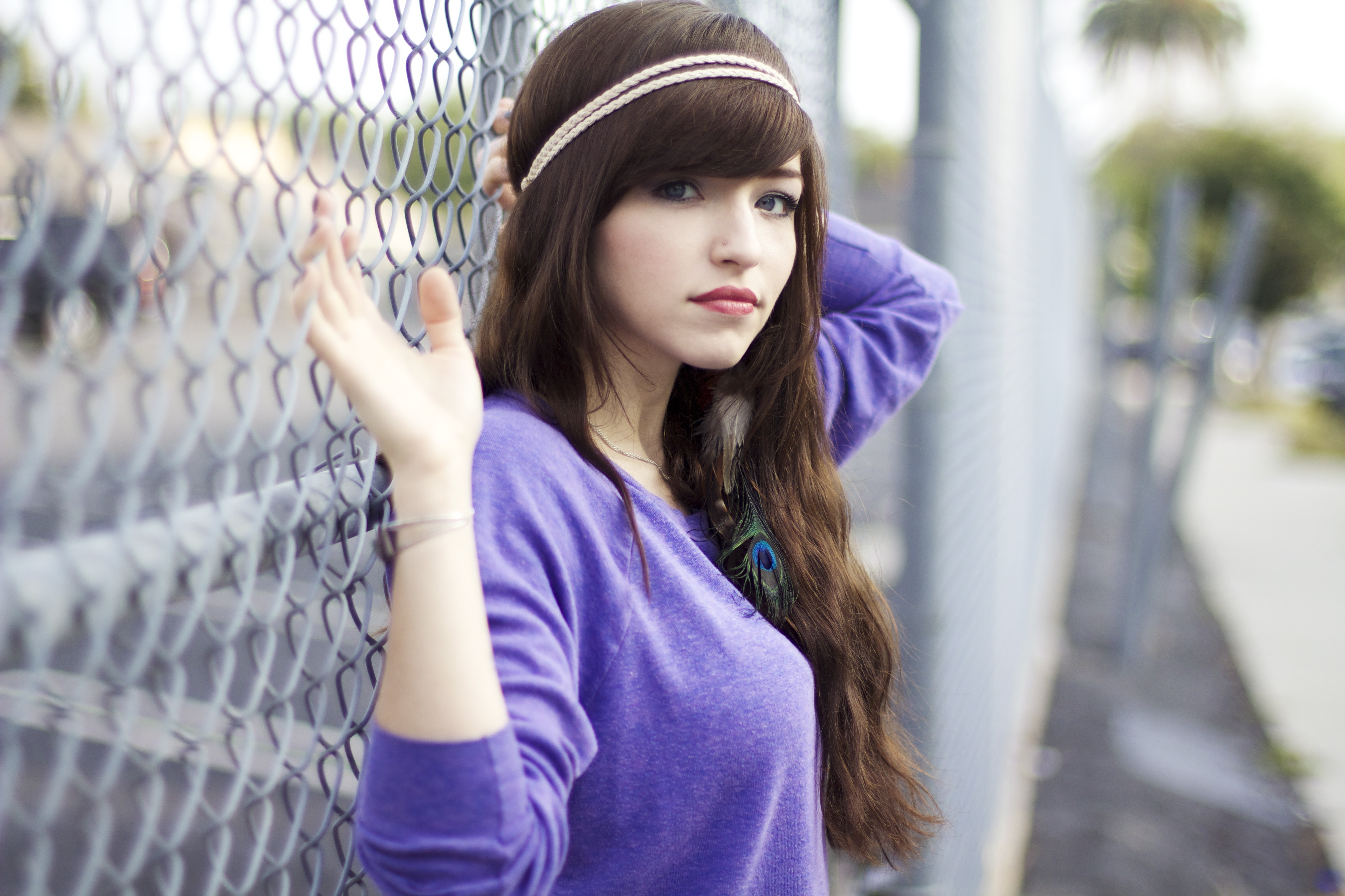 Woman brunettes bangs headbands Chain Link Fence Mandee Leslie