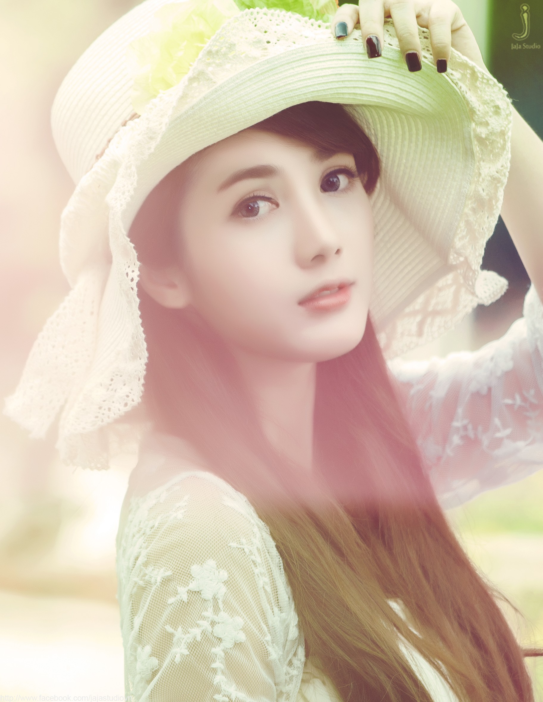 Flowers woman hats asians long hair models vietnamese Linh Napie