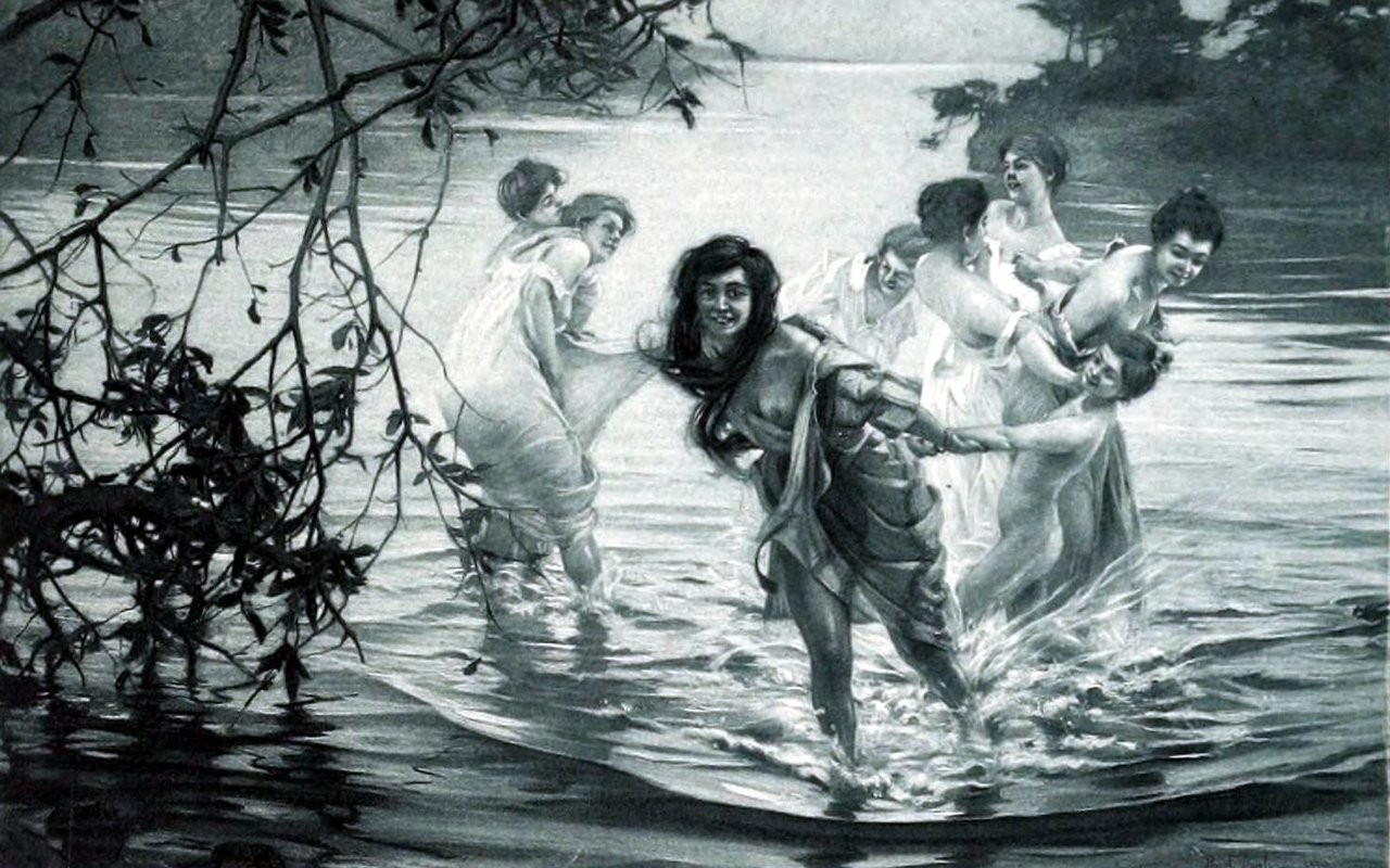 Woman children paintings lakes artwork joyeuse