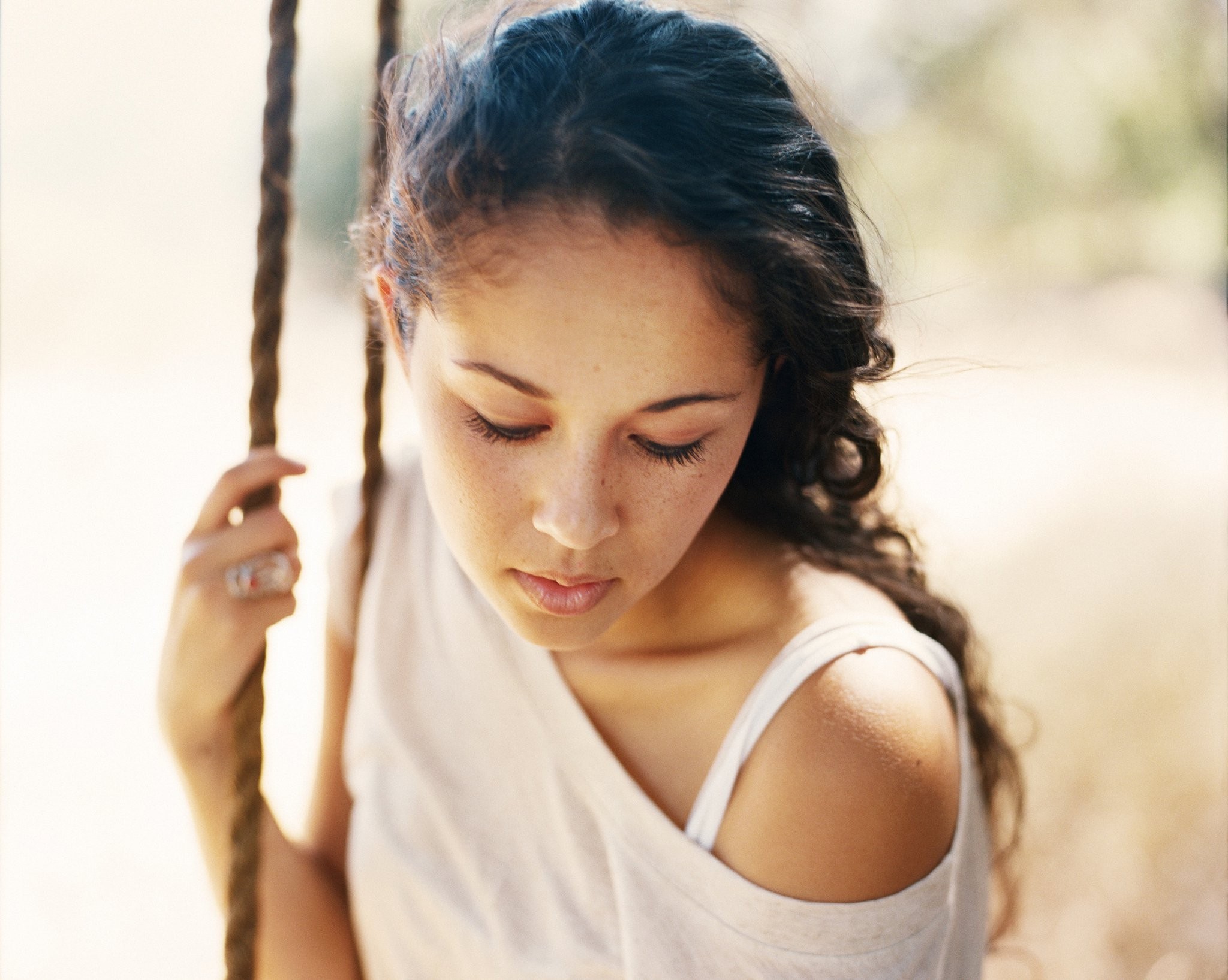 Woman close-up faces outdoors long hair brunettes singers