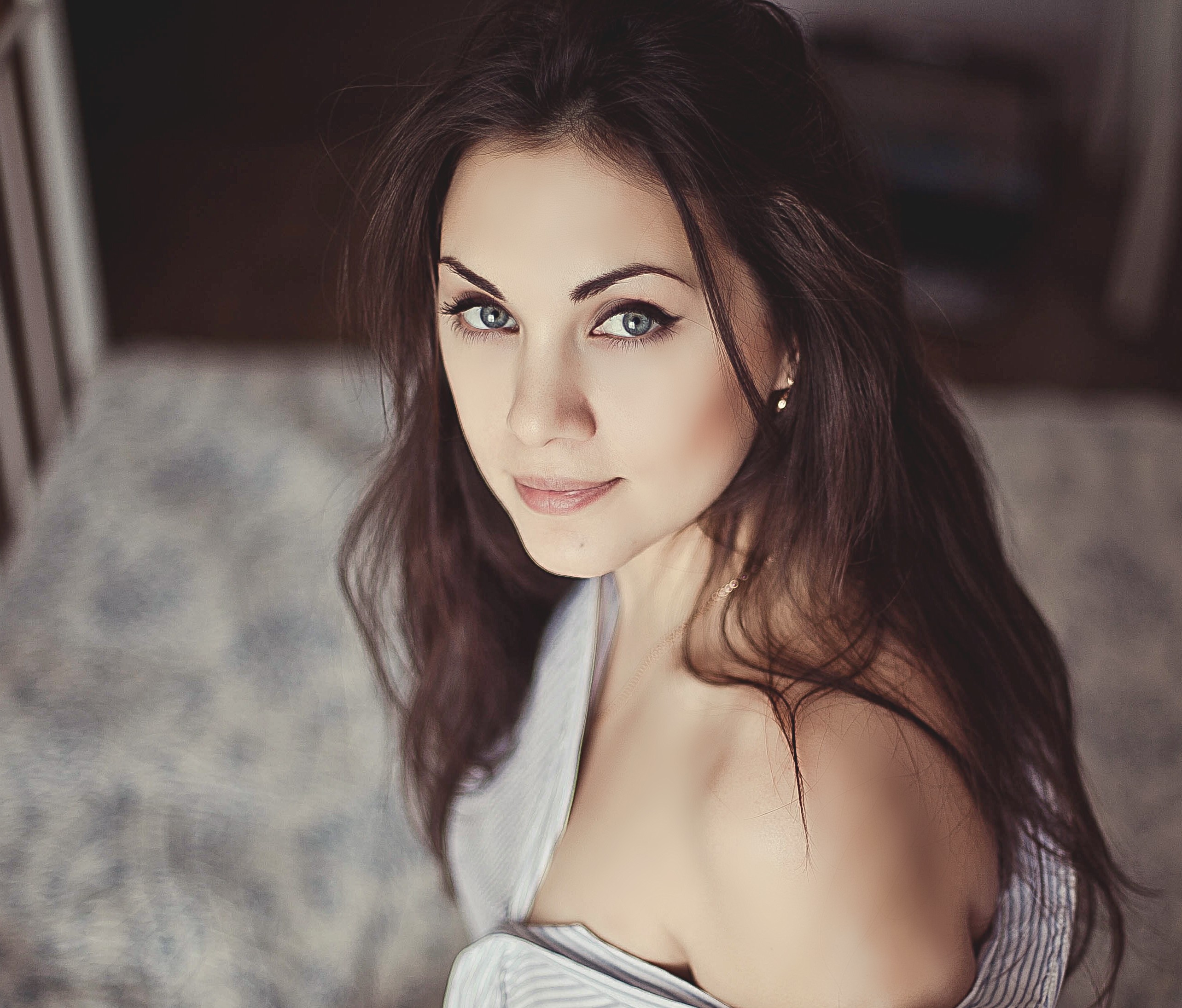 Woman close-up faces smiling blue eyes brunettes Lussie Lynch