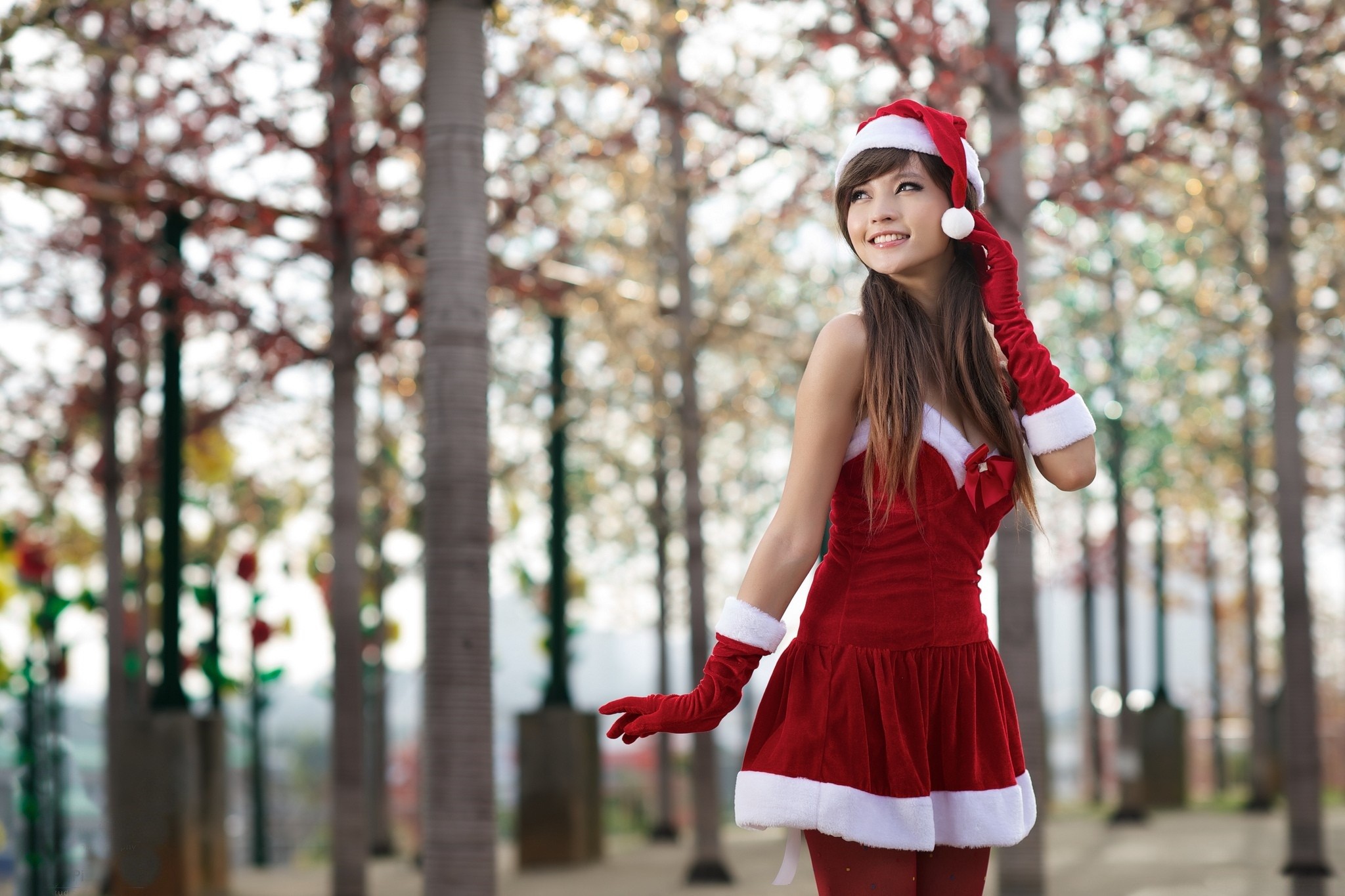 Woman dress santa santa claus stockings smiling brunettes santa