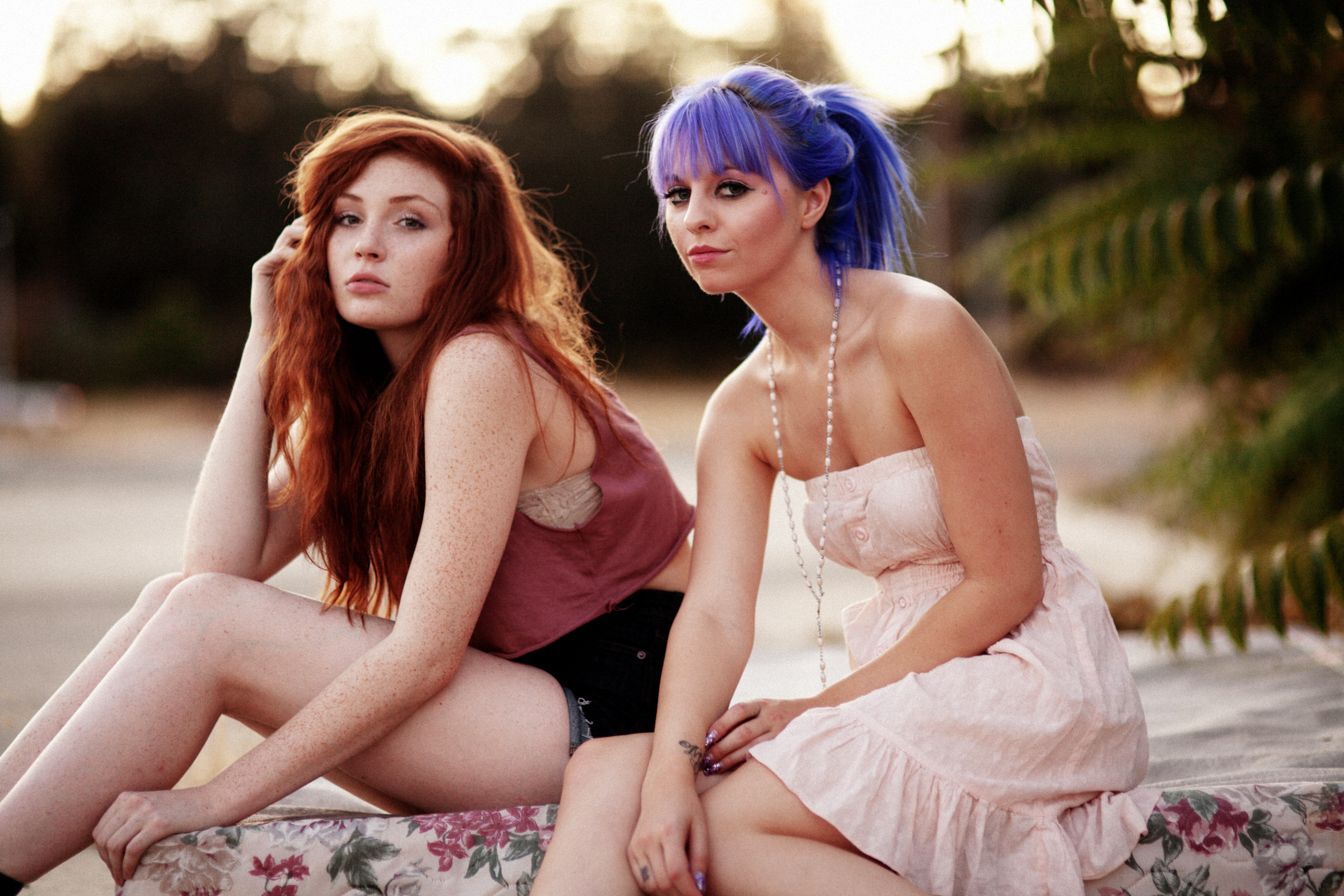 Woman dress tattoos sunlight danielle purple hair redheads