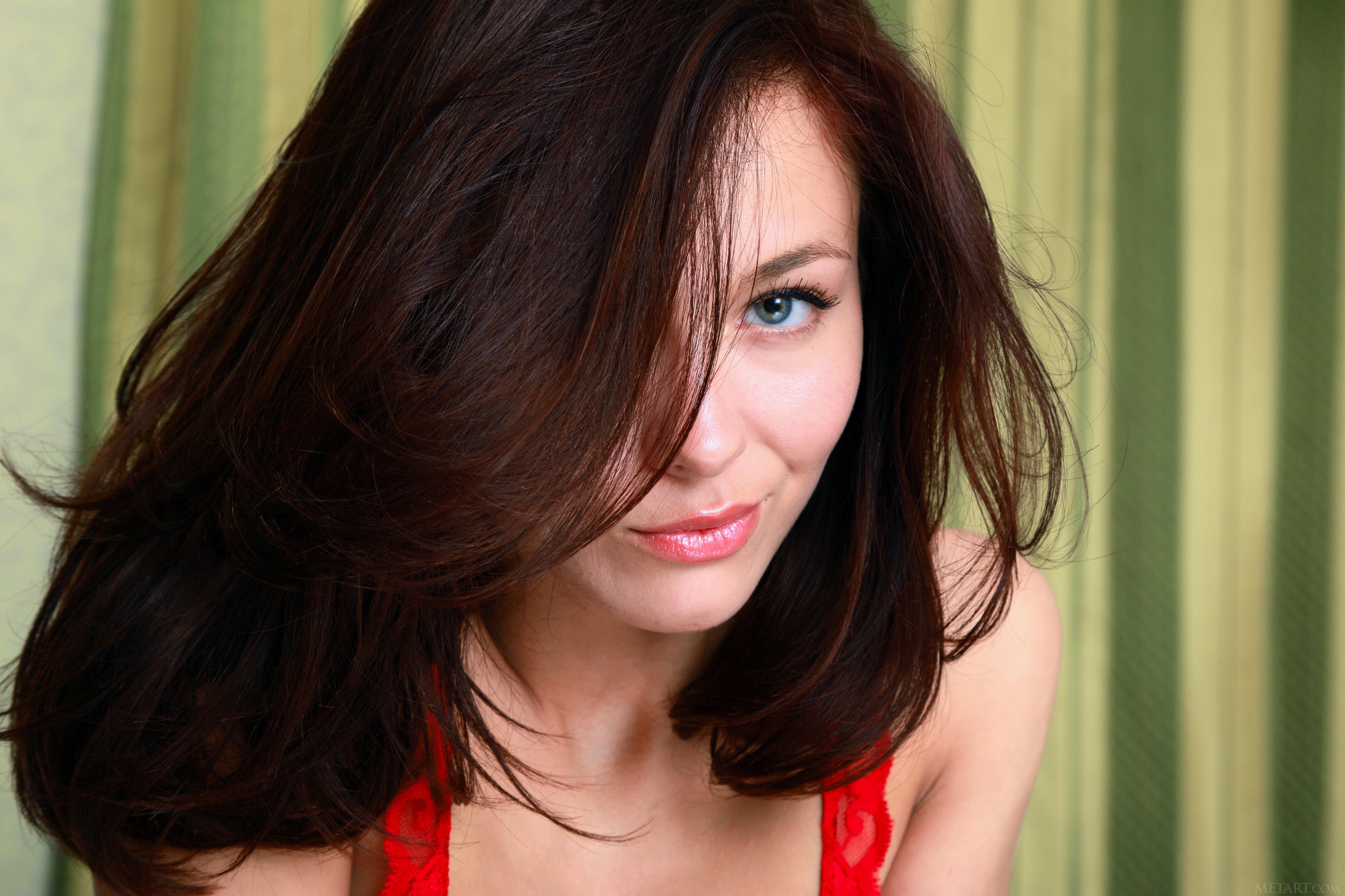Woman faces brunettes hair in face Met-Art magazine Mila M