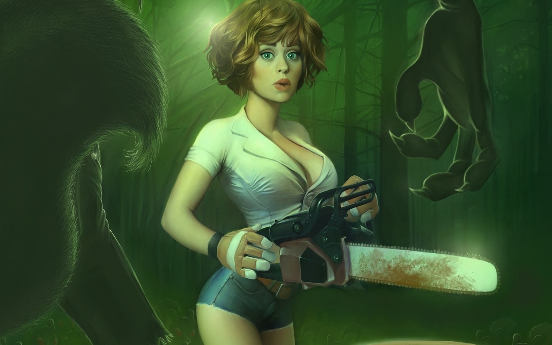 Woman fantasy art mechanical saw