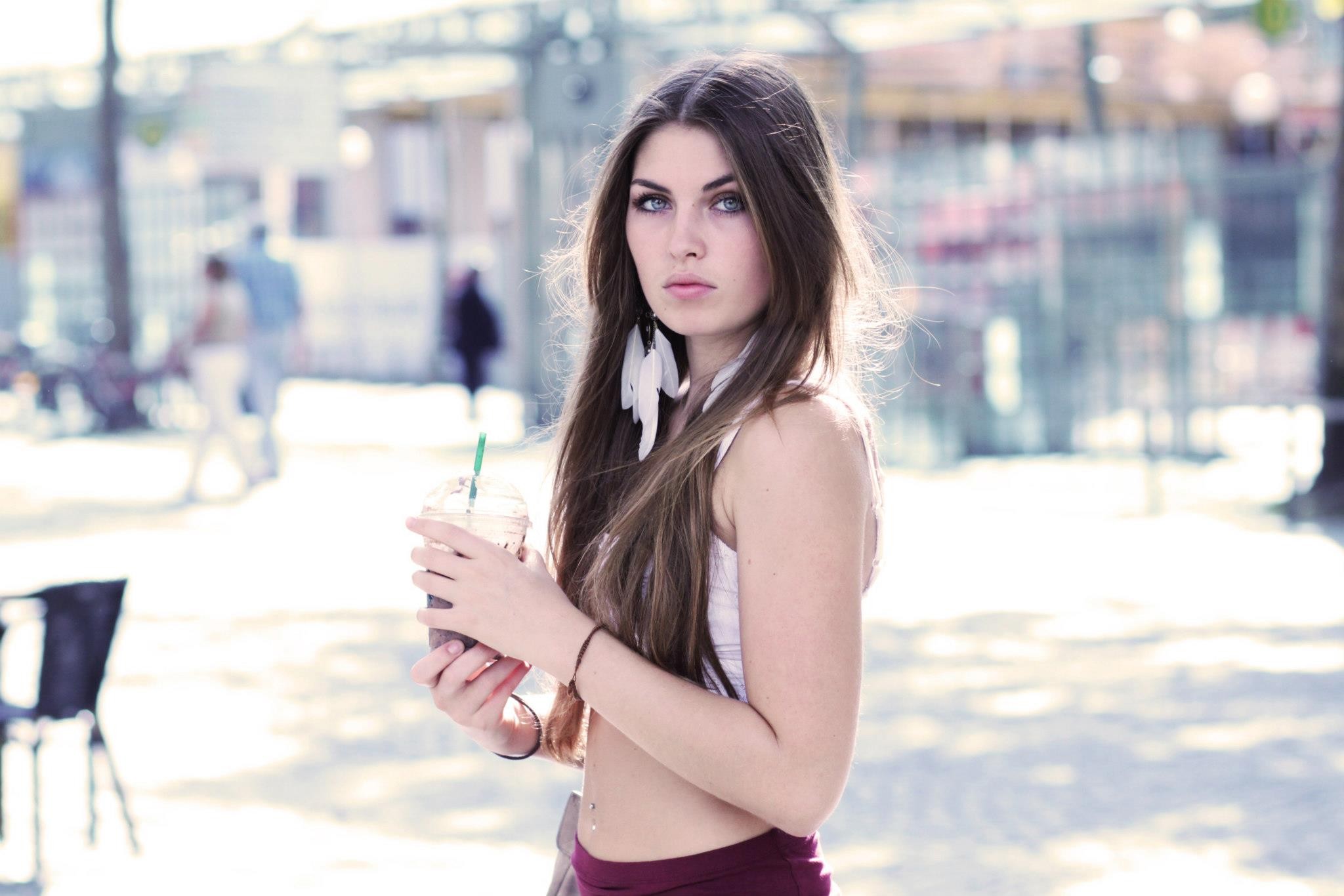 Woman green eyes brunettes models Hannah Biermann