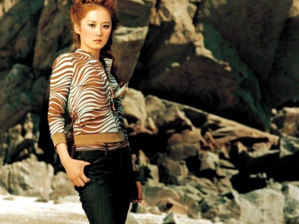 Woman jeans asians brunettes skinny Korean exposed midriff Jang