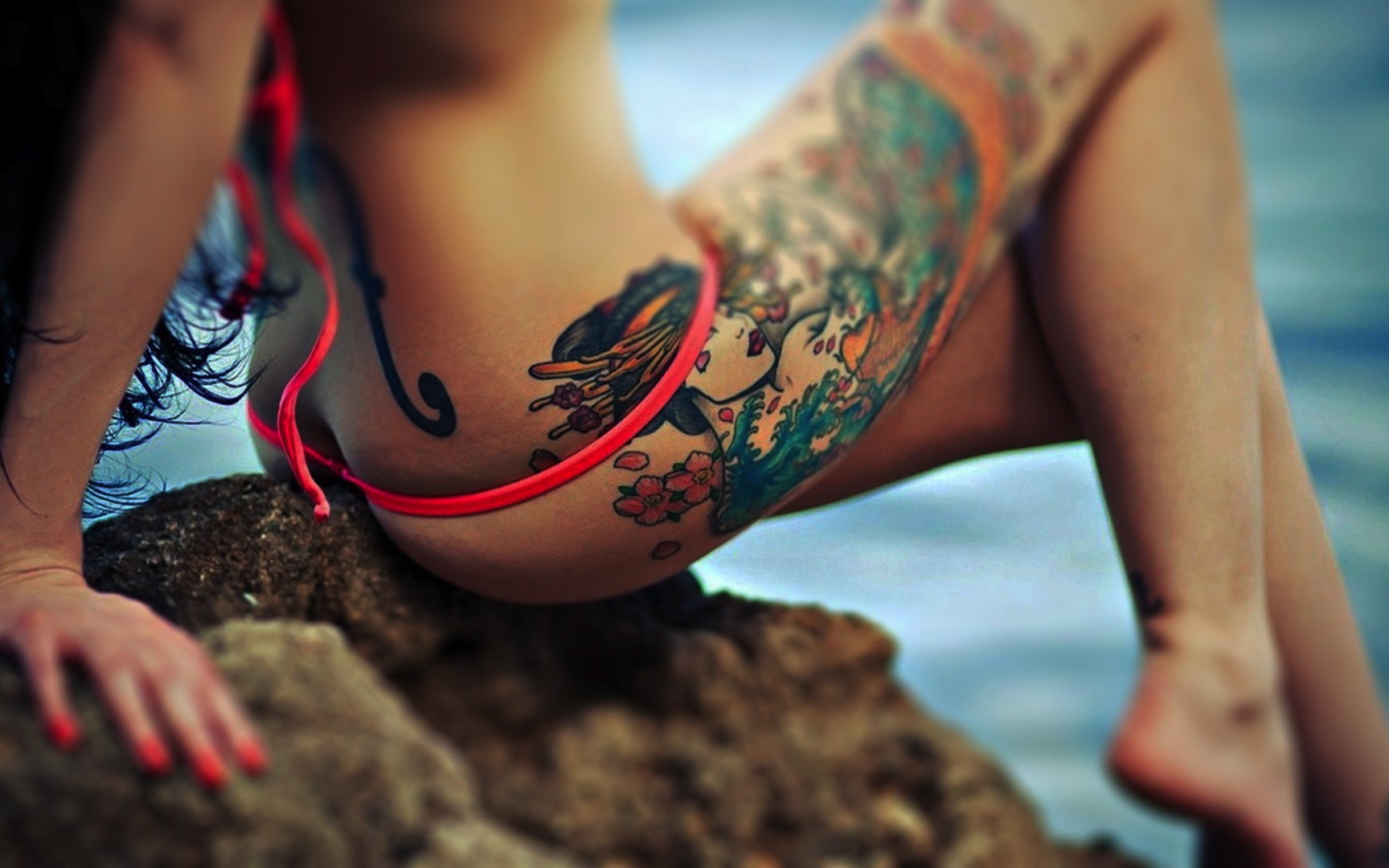 Woman legs outdoors tattoos models Sakura Redd