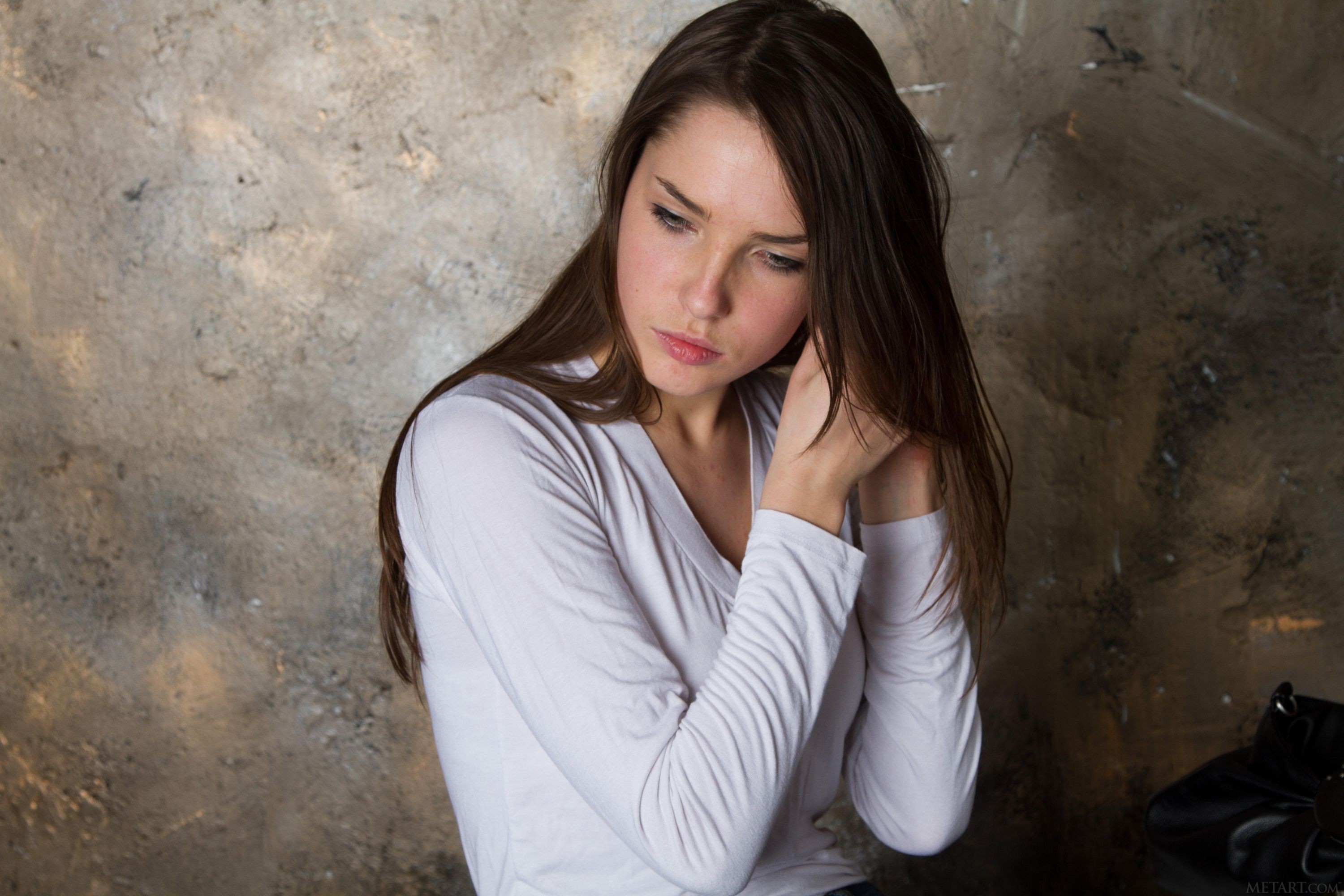 Woman looking down brunettes Met-Art magazine Semmi A