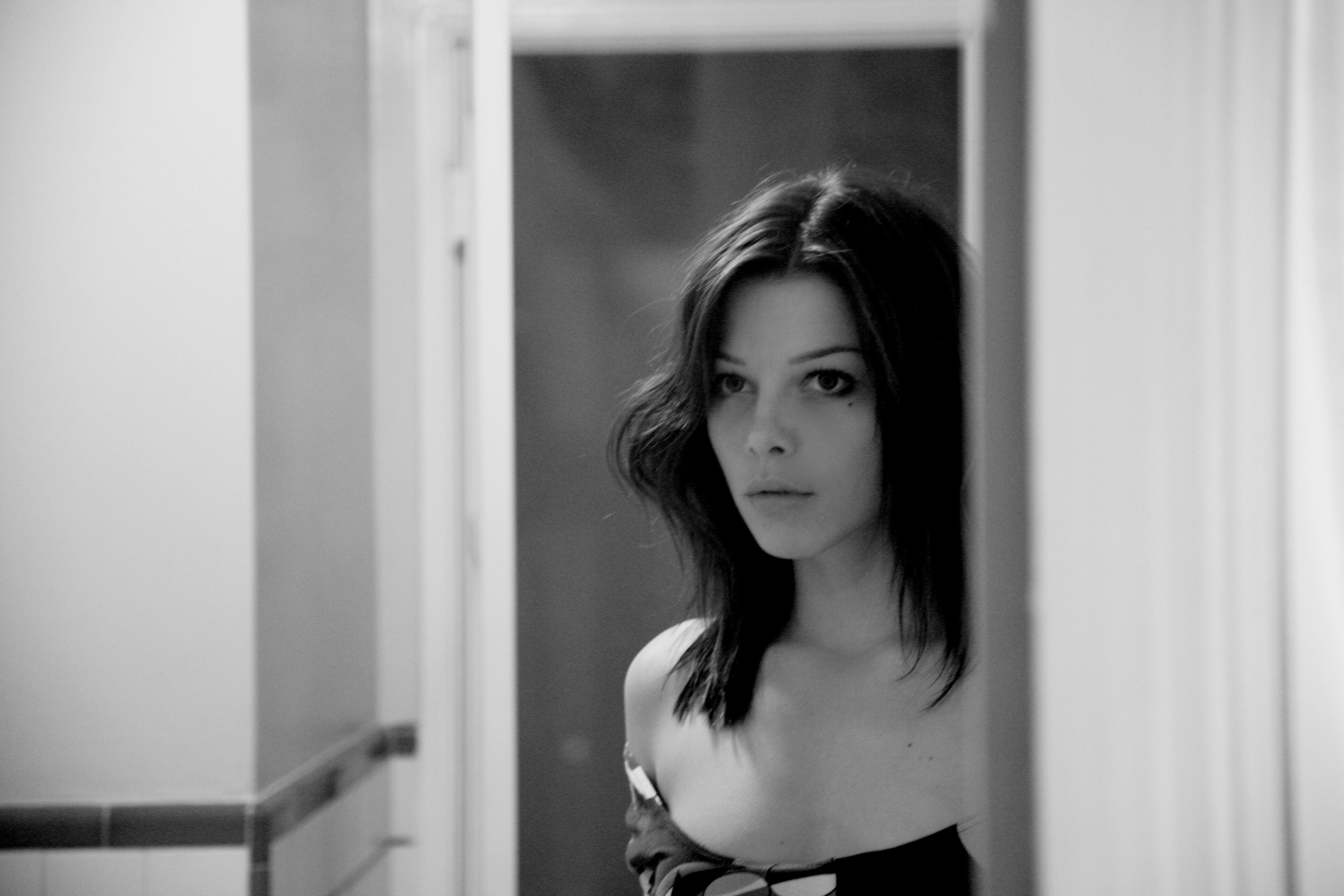 Woman monochrome faces bangs
