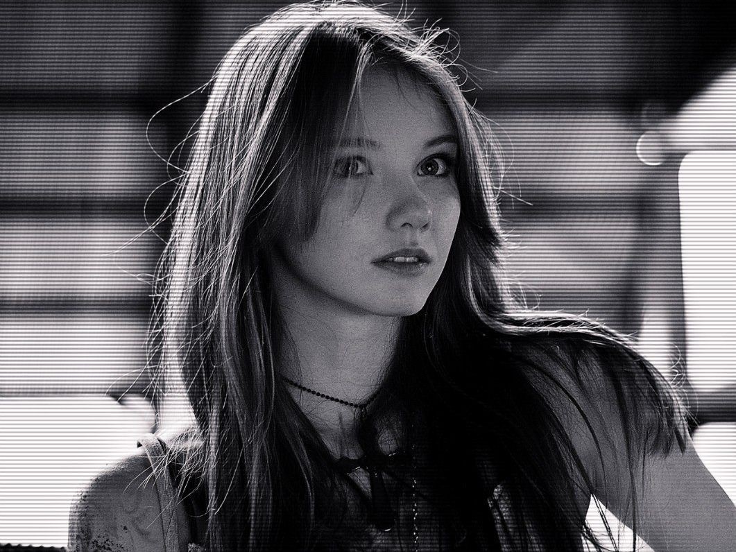 Woman monochrome blue eyes models Olesya Kharitonova