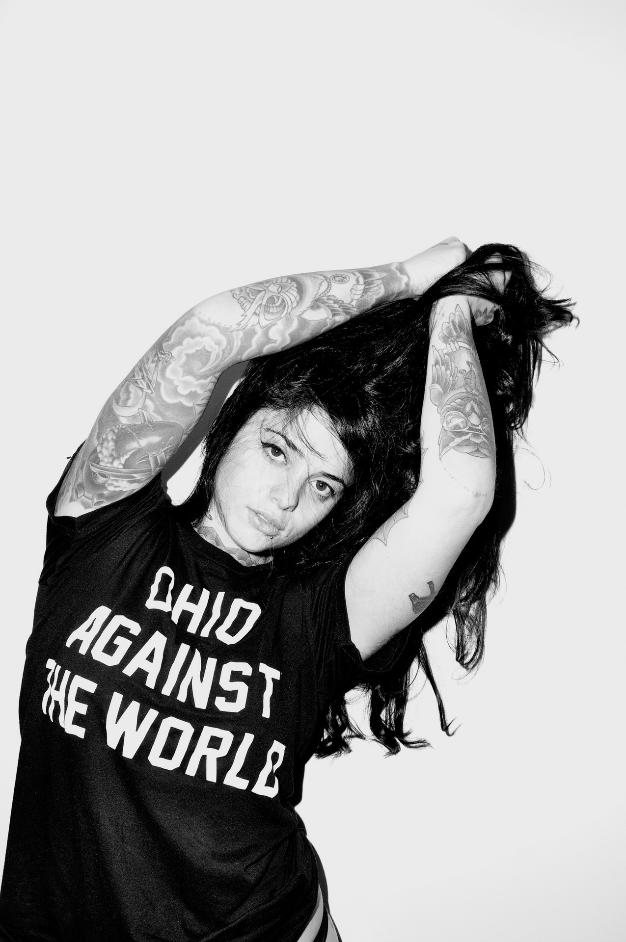 Woman monochrome tattoos brunettes redheads nude radeo suicide
