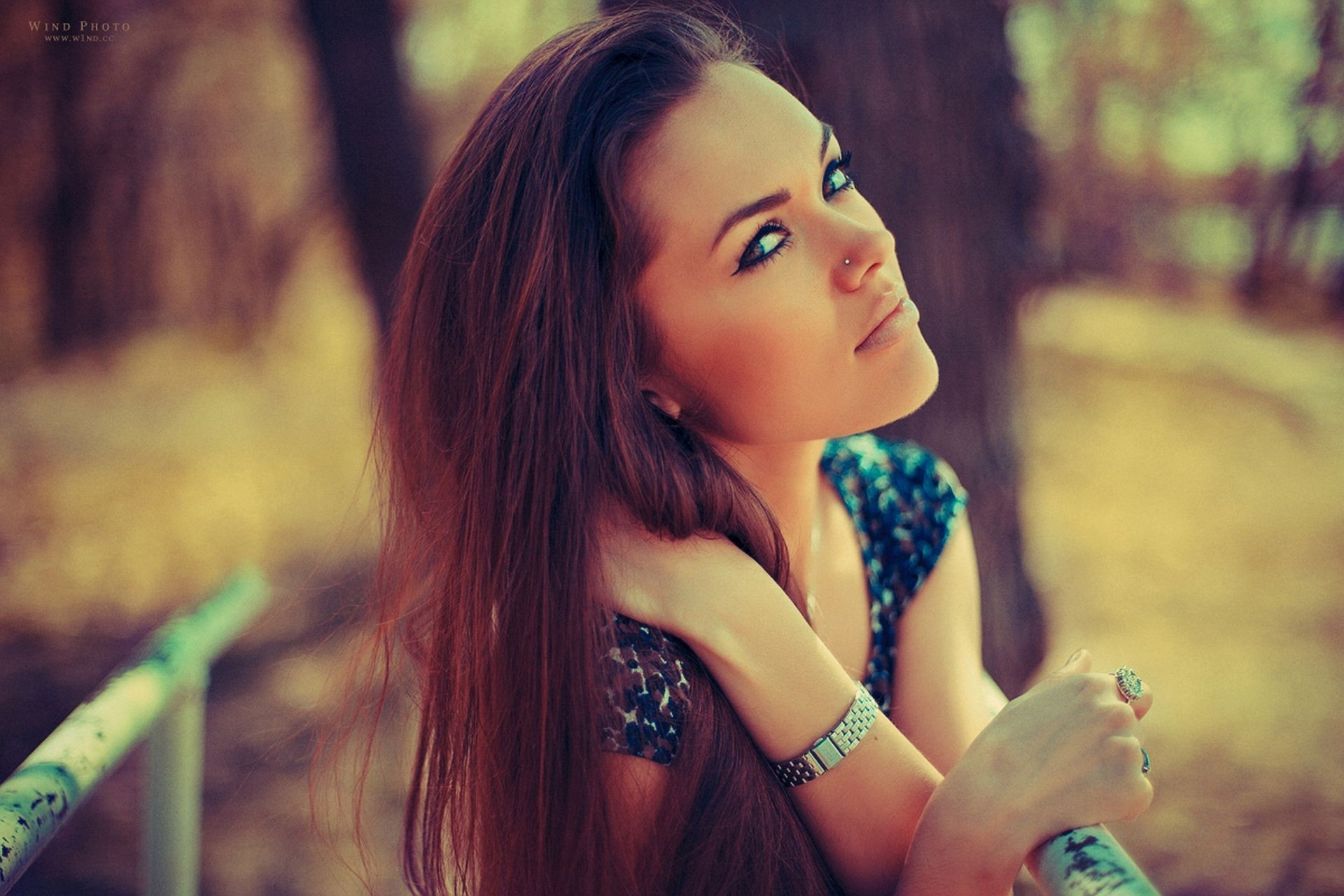 Woman bokeh sunlight long hair lens flare brunettes Natali