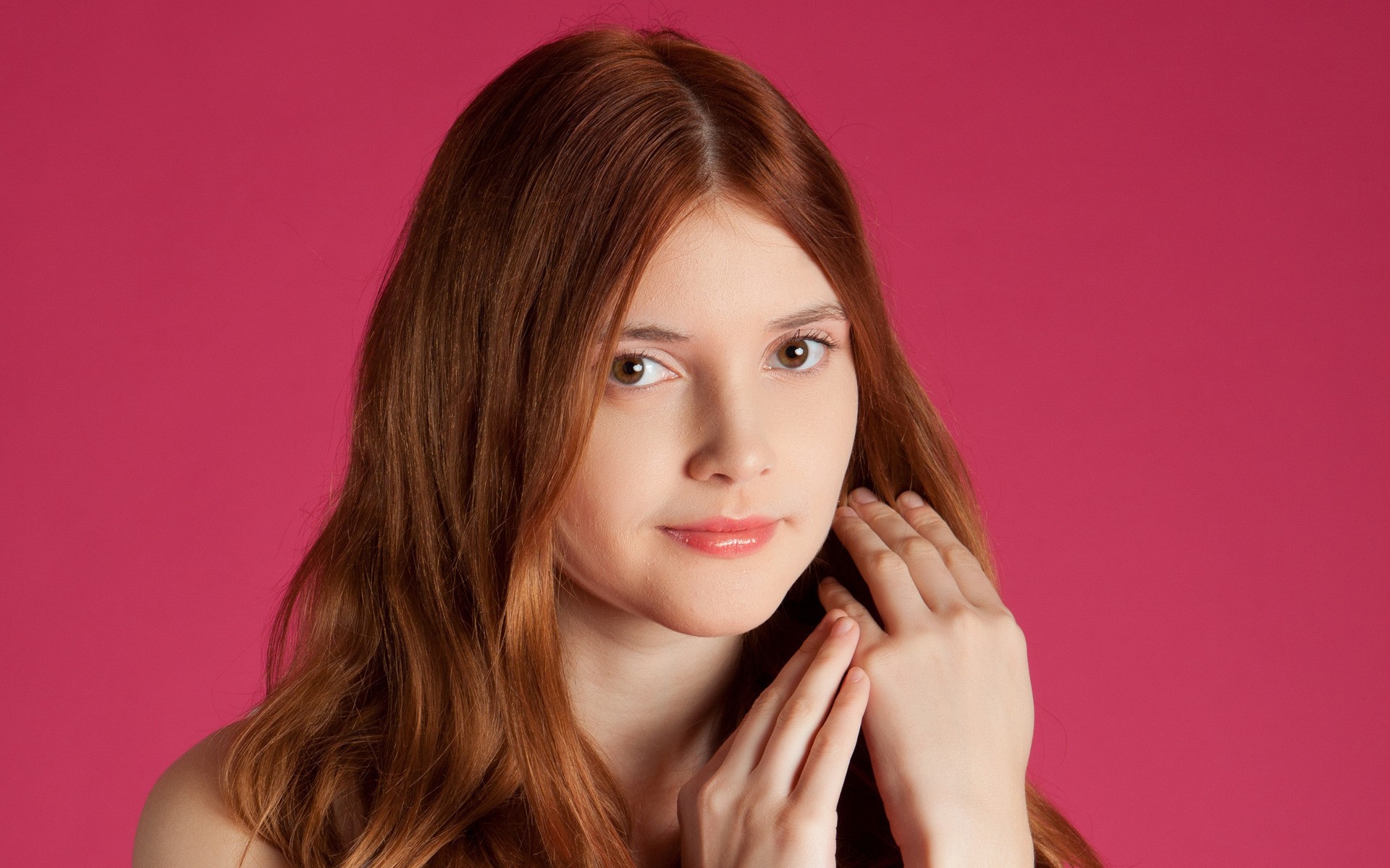 Woman pink background faces models redheads Met-Art magazine