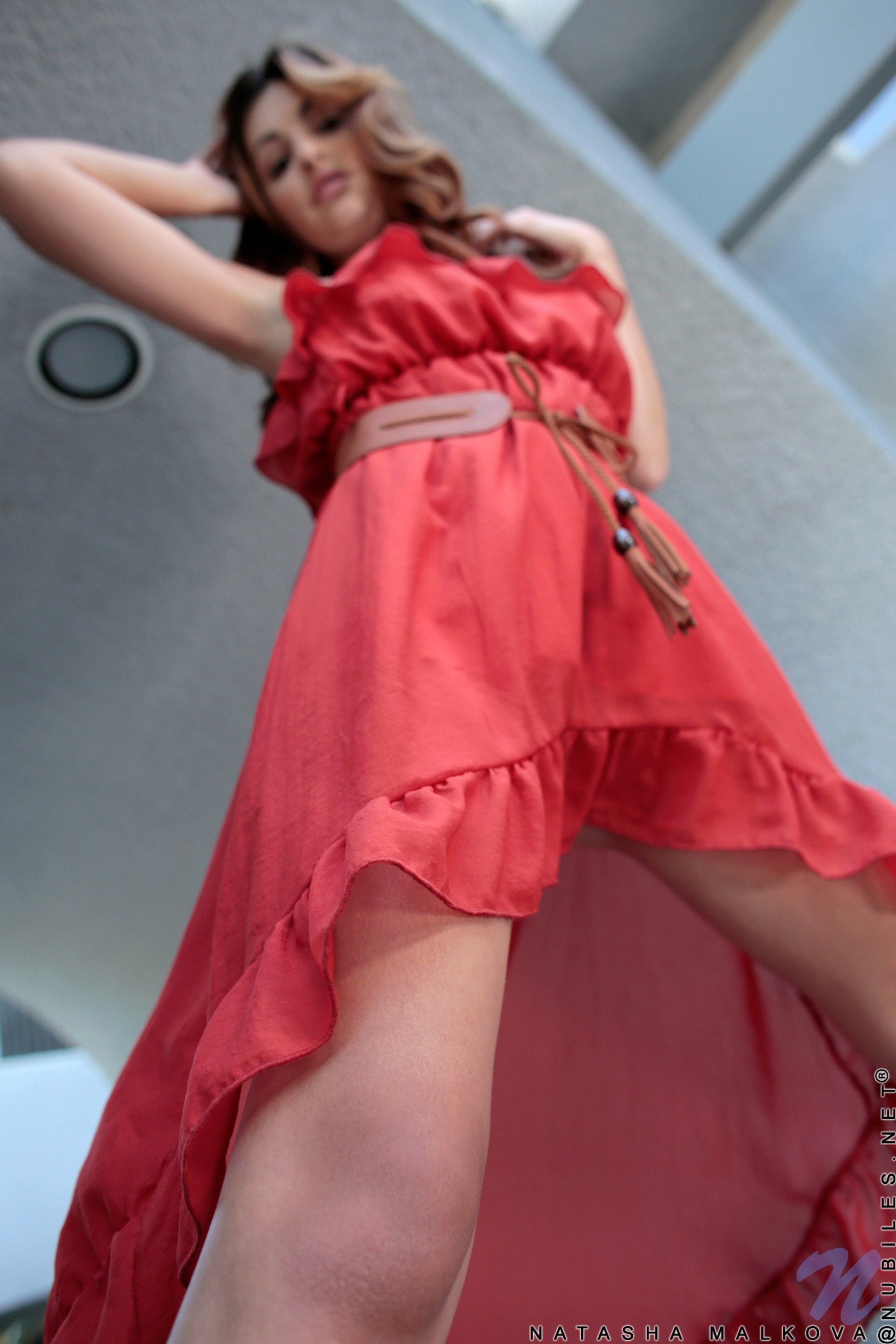 Woman red dress outdoors stills brunettes photo shoot pornstars