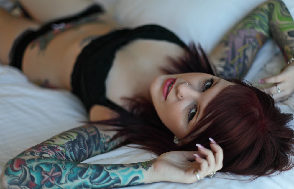 Woman redheads beds piercings