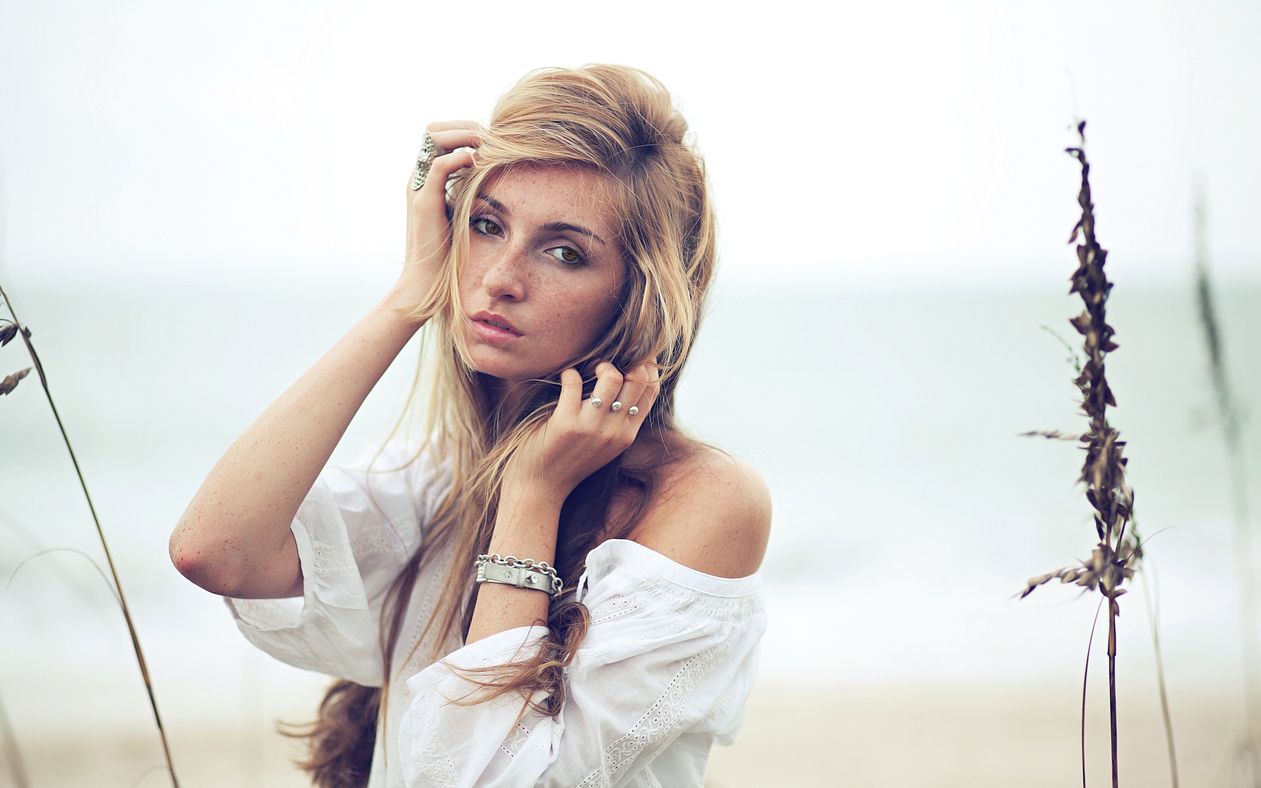 Woman rings blondes bracelets brown eyes models Brian Storey