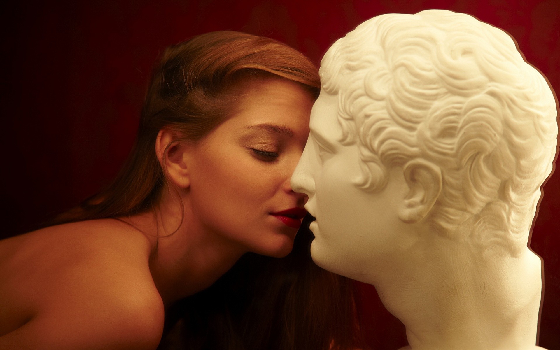 Woman statues kissing redheads crazy life