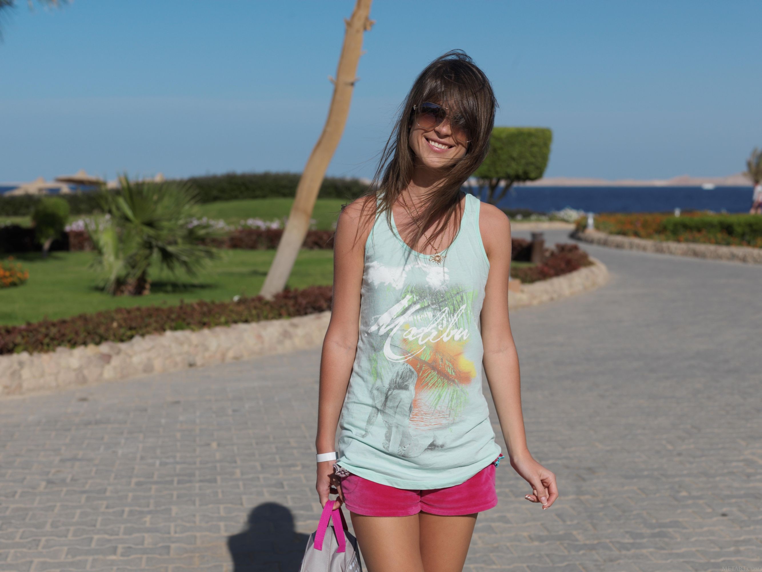 Woman sunglasses outdoors brunettes Met-Art magazine Mia D