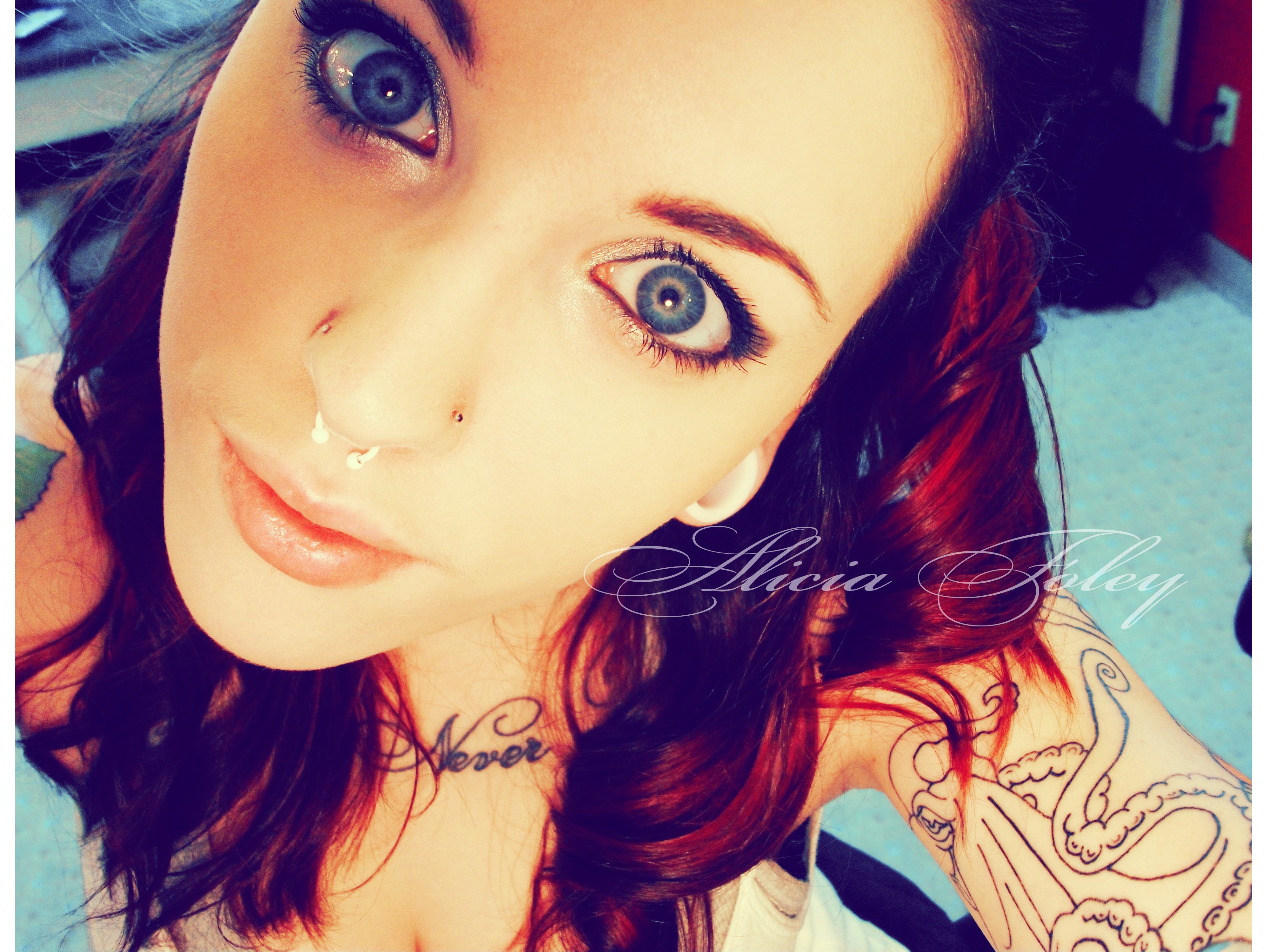 Woman tattoos blue eyes piercings Alicia Foley
