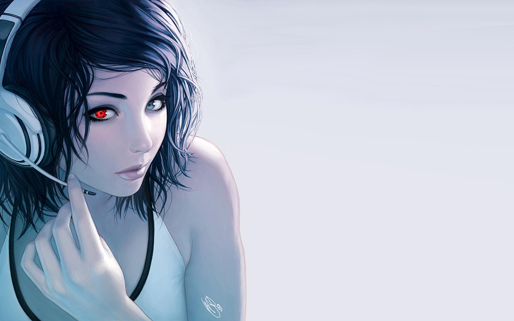 Headphones brunettes blondes woman