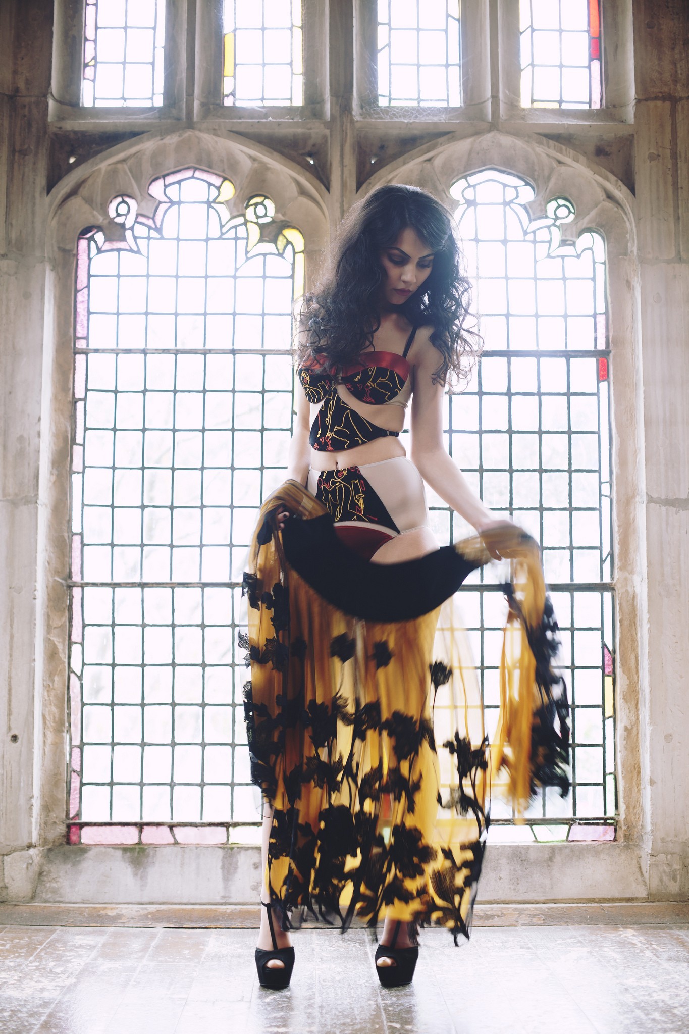 Brunettes legs woman black